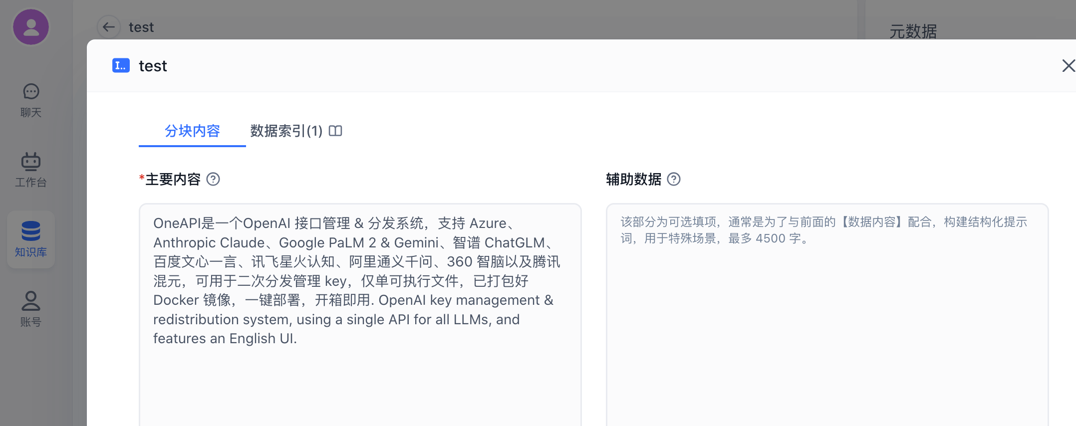注意:这里必须要添加至少一个索引模型和文本理解模型。
